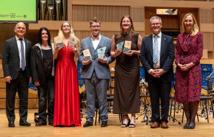 Penktadienį, minint Tarptautinę teatro dieną, Valstybiniame jaunimo teatre įteiktos Kultūros ministerijos Profesionaliojo scenos meno premijos ir atminimo ženklai „Auksiniai scenos...