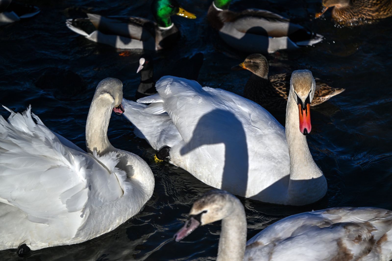 Sunku gulbėms - net ir radusios atviro vandens plotelį, jos neturi lesalo - dugne esančių žolių. Tas pats antims, laukiams.