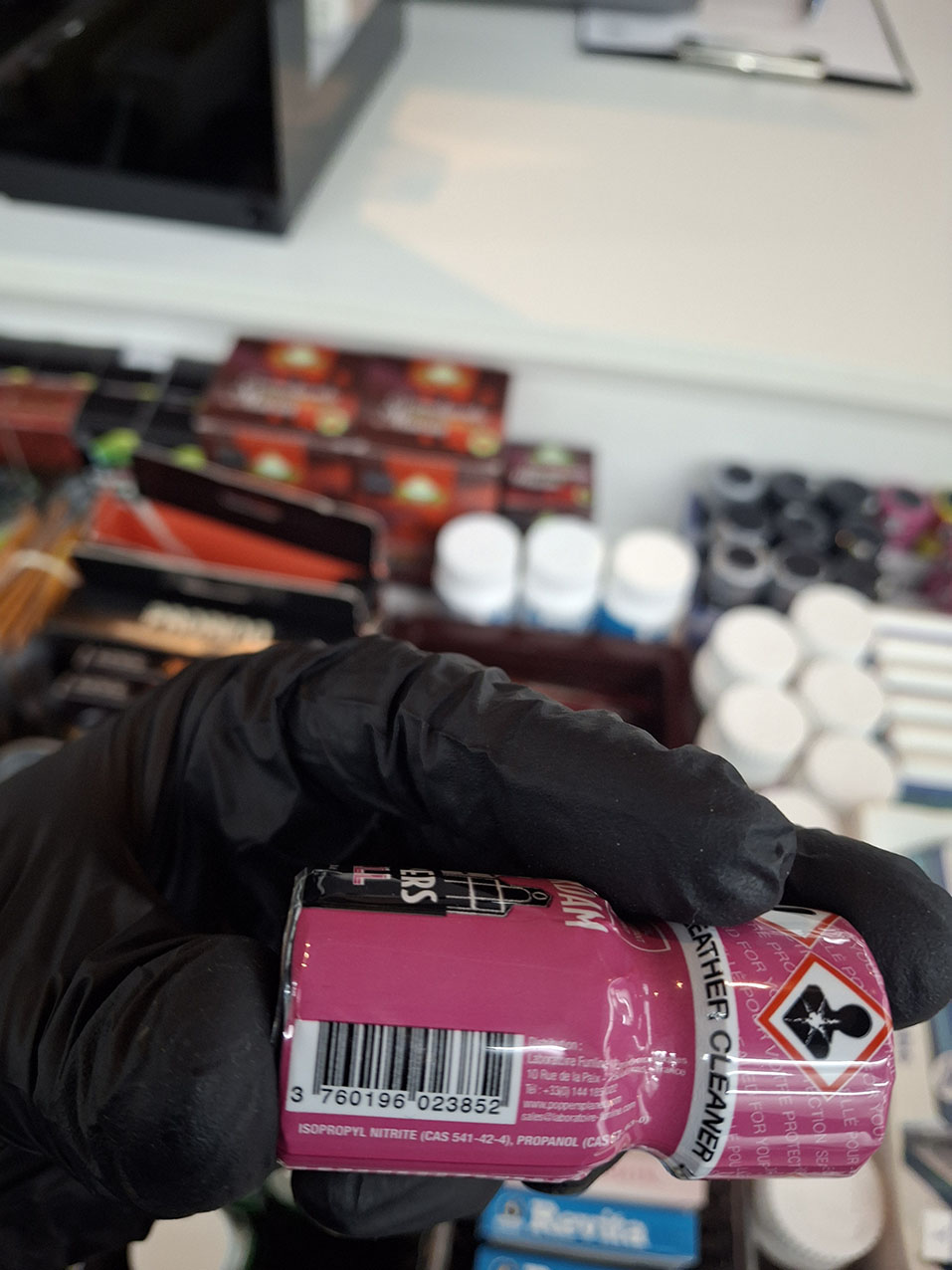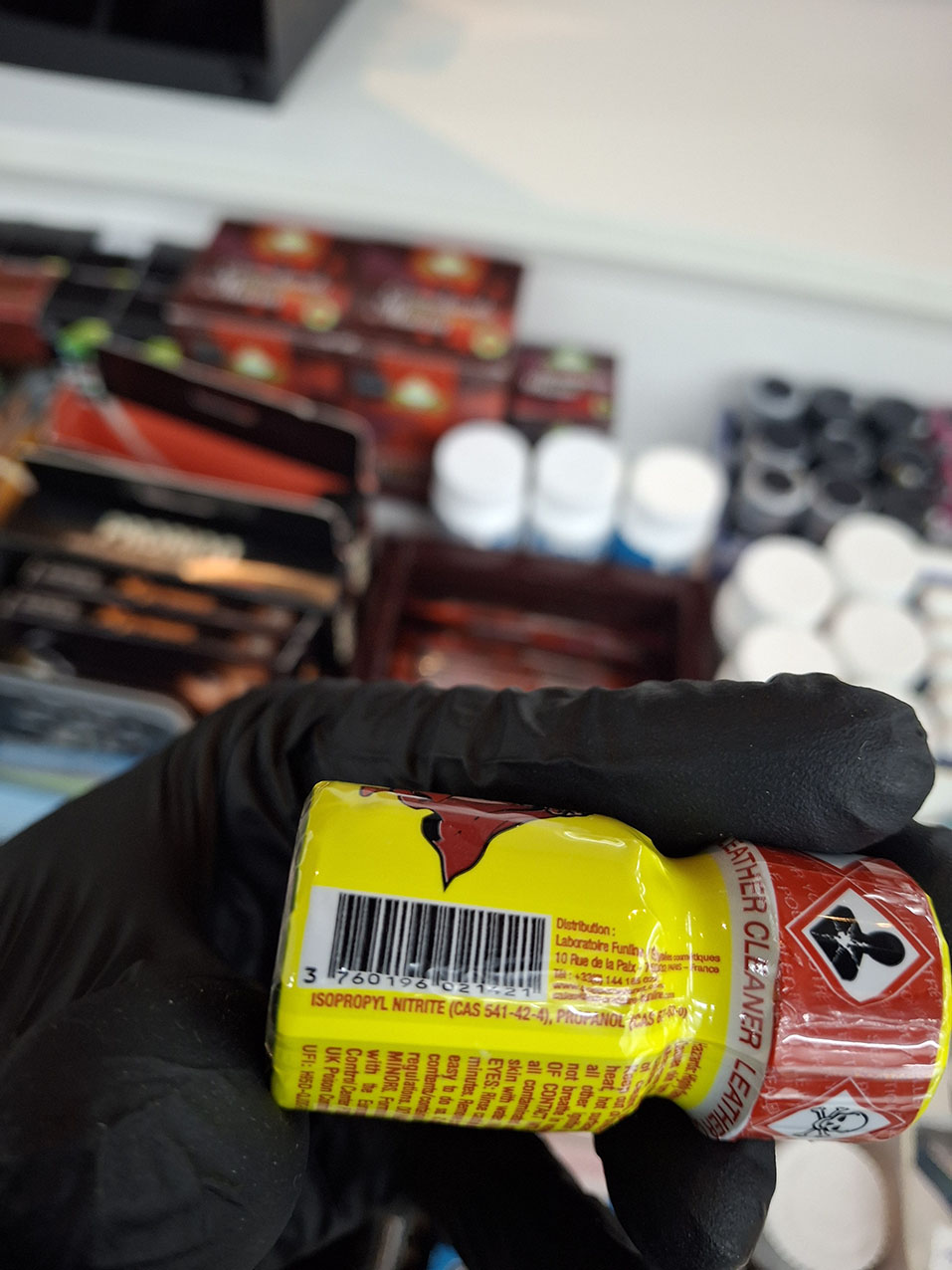 Muitinės kriminalinė tarnyba (MKT) ketvirtadienį pranešė, kad vasario 12 d. vykdė kratas 8 erotinių prekių parduotuvėse „Aistra", esančiose Vilniuje, Kaune, Panevėžyje, Klaipėdoje, Šiauliuose. Patikrintas ir sandėlis Kėdainių rajone. Rasta 1192 įvairių rūšių 10 ml talpos buteliukų su skysčiu, kurio sudėtyje, įtariama, yra psichotropinių medžiagų amilnitrito ir izopropilnitrito.