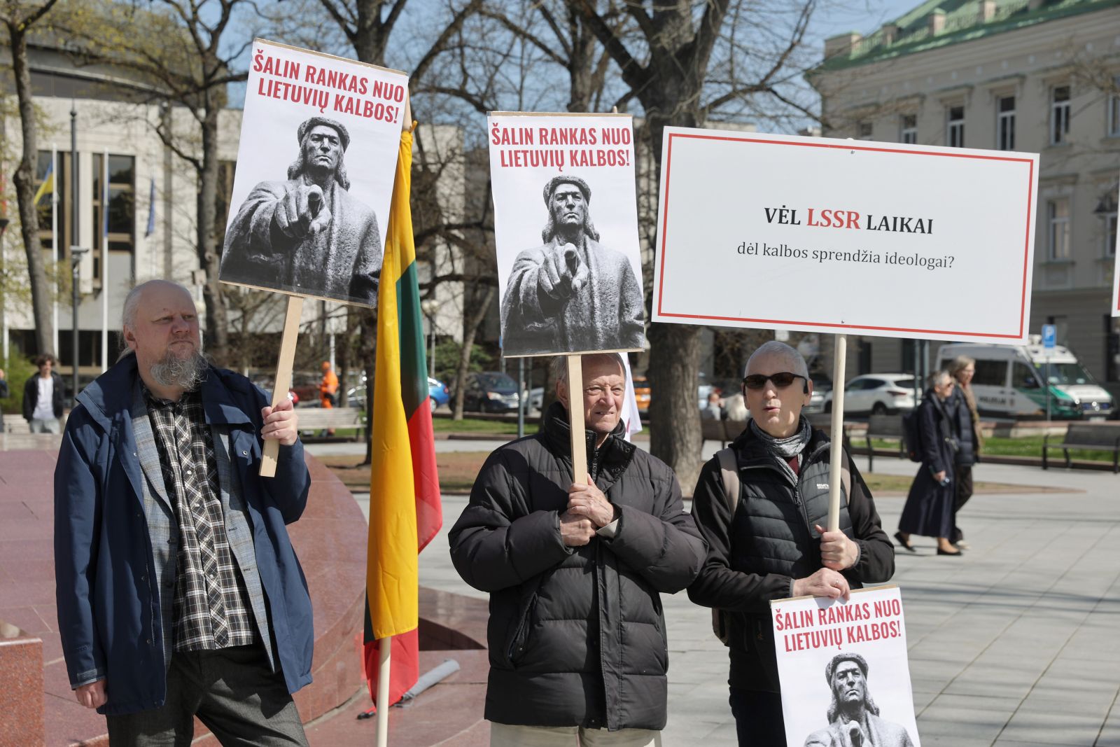 Vakarykščiame prie Vyriausybės rūmų vykusiame proteste dalyvavo ir anglų kalbos mokytoja Alina Laučienė, kurią Vilniaus miesto apylinkės teismas išteisino byloje dėl tariamo kurstymo prieš kitakalbius. Teisėsaugos ji maždaug dvejus metus buvo tampoma dėl straipsnio, kuriame kritikavo Lietuvoje gyvenančius, bet lietuvių kalbos piktybiškai nesimokančius kitataučius.