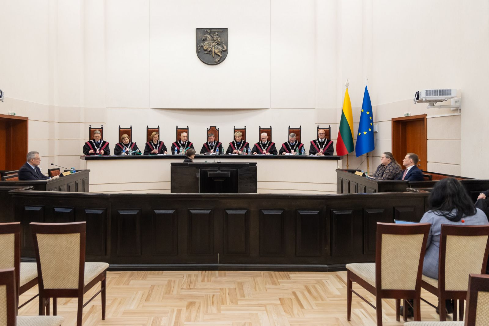 Bylos nagrinėjime antradienį dalyvavo pareiškėjos, Seimo narių grupės, atstovai – parlamentarai Mindaugas Lingė ir Agnė Širinskienė, taip pat suinteresuoto asmens, Seimo atstovas, Seimo narys Raimondas Šukys. Teismas išklausė jų pasisakymus, suteikė galimybę šalims užduoti klausimus ir į juos atsakyti.