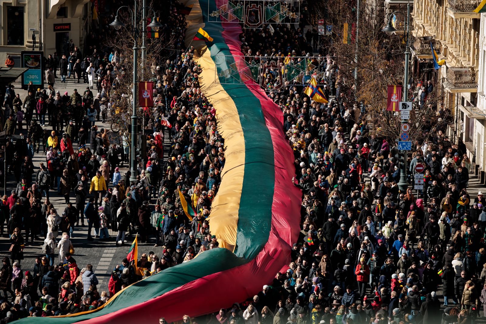Iškart po to Gedimino prospektu nuo Nepriklausomybės aikštės iki Katedros aikštės žygiuos Lietuvos kariuomenės Garbės sargybos kuopos ir trijų Baltijos valstybių kariuomenių orkestrai.