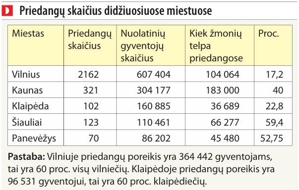 Apskaičiuota, jog miestuose priedangų turi būti tiek, kad jose vienu metu galėtų pasislėpti 60 proc. gyventojų, o rajonuose - 40 proc. Visoje Lietuvoje turėtų būti 6453 priedangos, kuriose laikinai tilptų 54 proc., tai yra 1,5 mln. gyventojų (Suomijoje slėptuvėse telpa 87 proc. žmonių).
