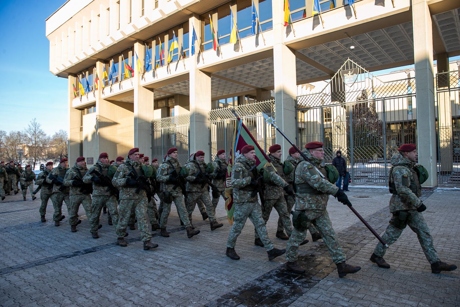 Vėliau kariai surengė eiseną Gedimino prospektu Nepriklausomybės aikštės link bei iškilmingą rikiuotę prie Seimo rūmų.