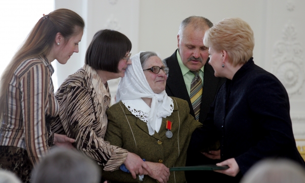 Ją apdovanojimo atsiimti atlydėjusi svainė Milda Vinckienė užtikrino, kad kol Lietuvoje bus tokių gausių ir draugiškų šeimų, valstybei nereikės išlaikyti nei apleistų vaikų, nei vienišų senelių.