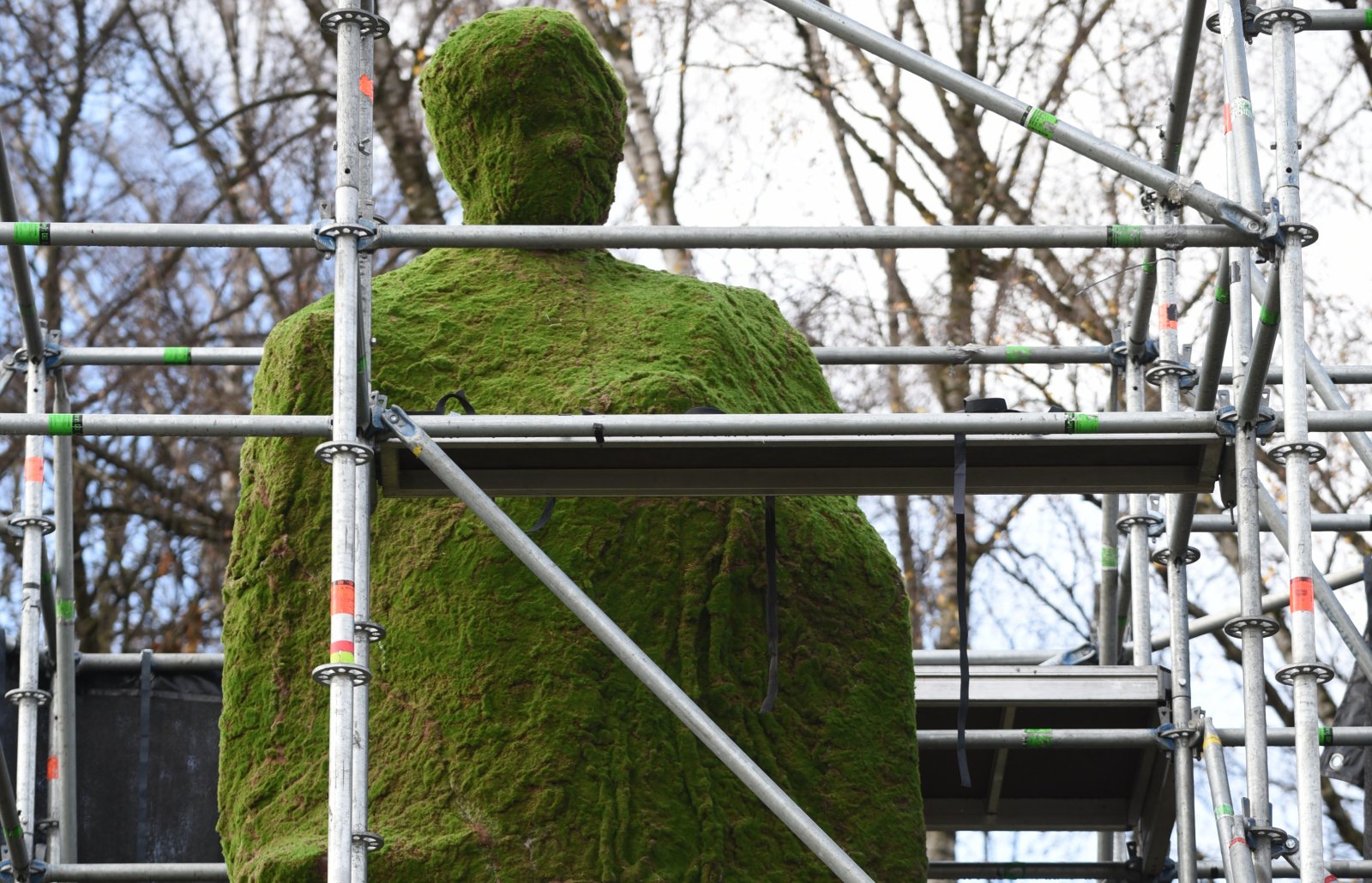Menininkės Eglė Grėbliauskaitė ir Agnė Gintalaitė penktadienį informavo, kad joms neleidžiama nuo dekoruoto paminklo nuimti pastolių bei darbą dengusio audeklo. Vis dėlto „Vakaro žinių" fotografas užfiksavo paminklą visame žalume, jau be audeklo.