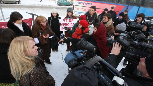 Vakar prie Prezidentūros Samdomų darbuotojų profsąjunga surengė piketą tikėdamasi, kad “Lelijos” darbininkių pagalbos šauksmą išgirs Dalia Grybauskaitė ir paragins aukščiausius šalies vadovus imtis konkrečių veiksmų panaikinti šią gėdingą vergovę.