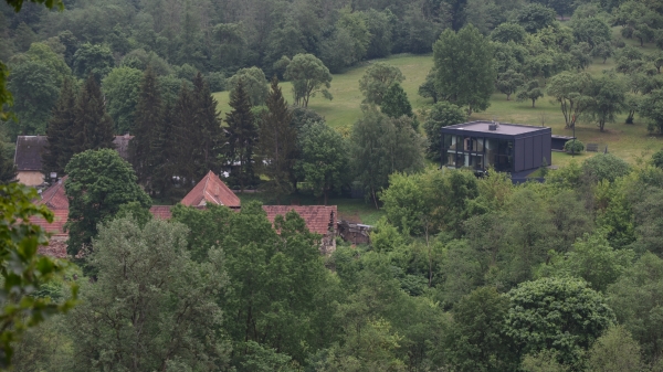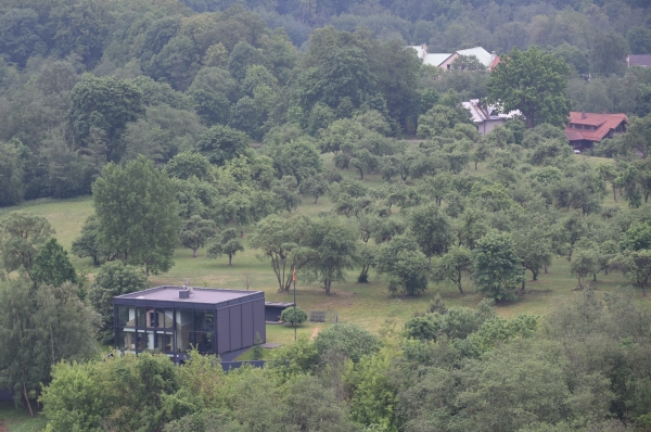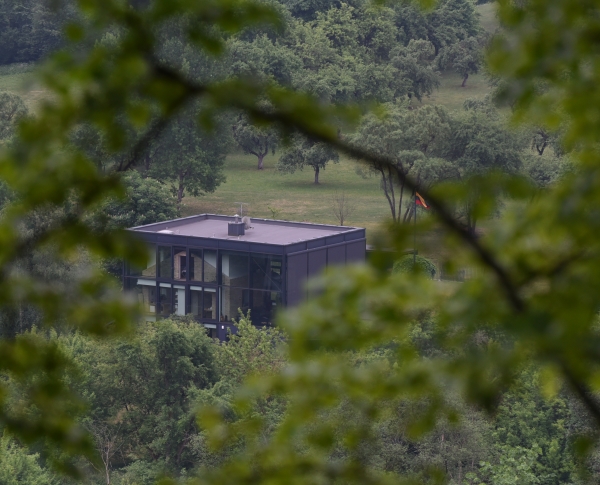 Pavilnių ir Verkių regioninių parkų direkcija kubo formos stiklinio namo statybą dar šio šimtmečio pradžioje buvo apskundusi teismui. Pirmos instancijos teismas skundą pripažino nepagrįstu, antros - irgi, o galimybės kreiptis į Aukščiausiąjį Teismą pastarasis nepaliko. Direkcijai pabodo pilietiškų žmonių priekaištai, kodėl leista saugomoje teritorijoje statyti aplinkai nebūdingą namą. Todėl buvo nuspręsta pakabinti lentelę, kad šio pastato statybai pritarta teismų sprendimu.