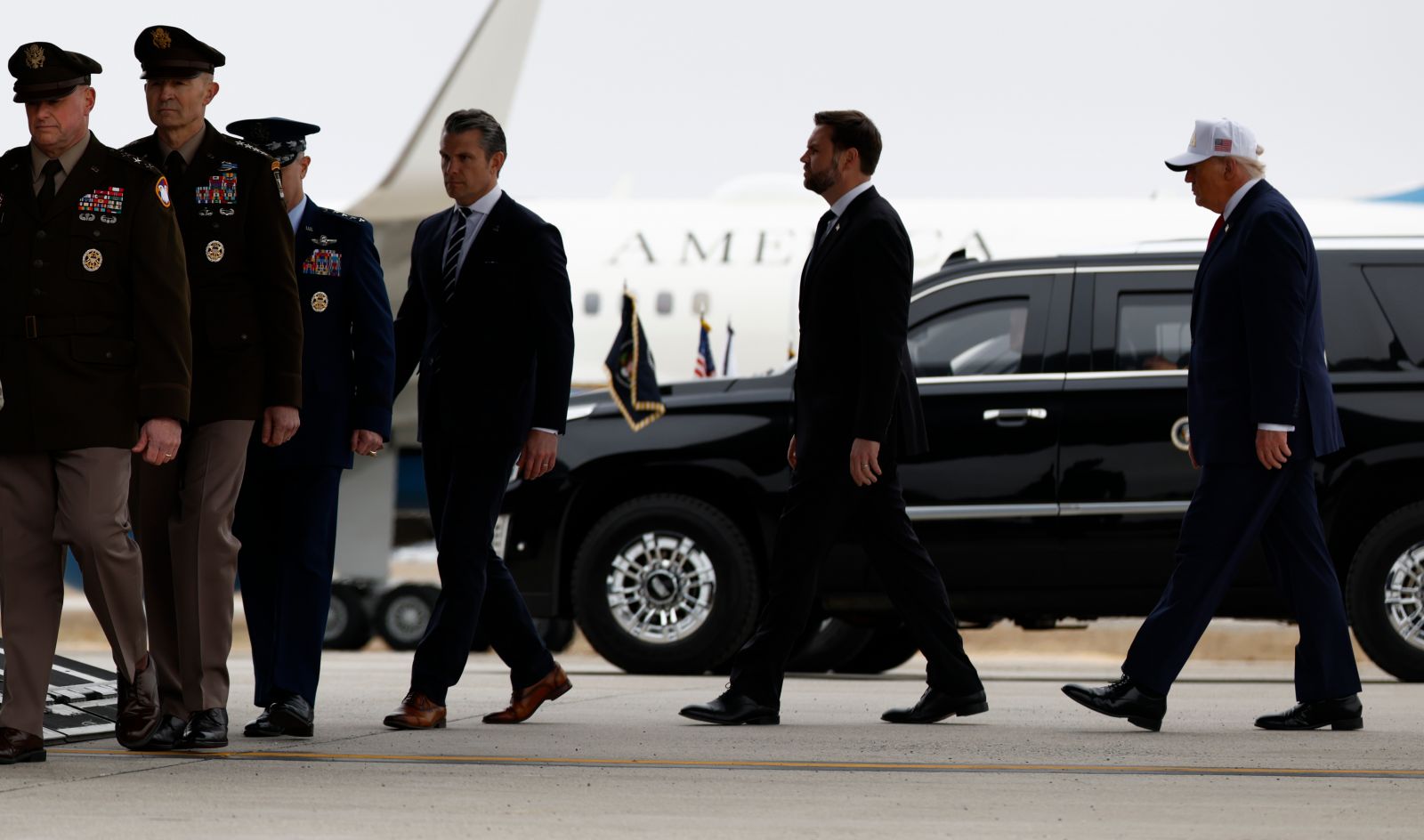 JAV prezidentą lydėjo pirmoji ponia Melania Trump, viceprezidentas J. D. Vance‘as, gynybos sekretorius Pete‘as Hegsethas, Jungtinio štabo vadų komiteto pirmininkas generolas Danas Caine‘as ir kiti aukšto rango pareigūnai bei Kongreso nariai.