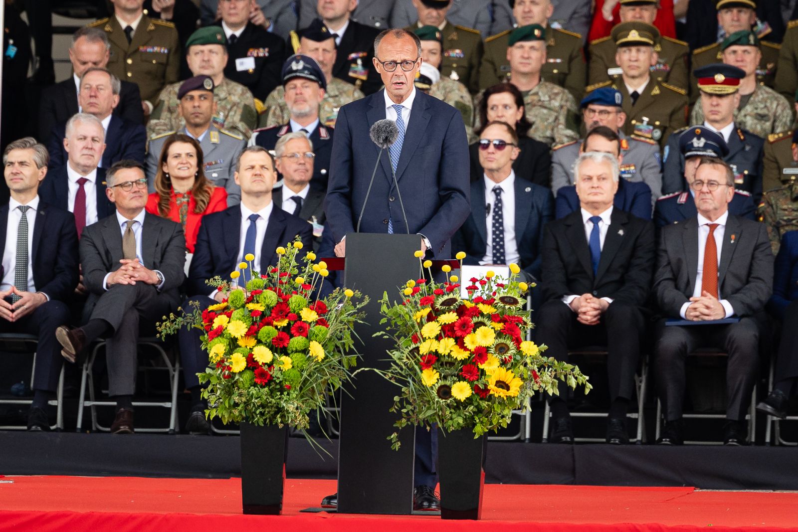 Ant šios lentos lietuvių, anglų bei vokiečių kalbomis įrašyta frazė, kurią F. Merzas ištarė Vokietijos brigados inauguracijos metu: „Lietuvos saugumas yra ir mūsų saugumas. Vilniaus apsauga – Berlyno apsauga“.