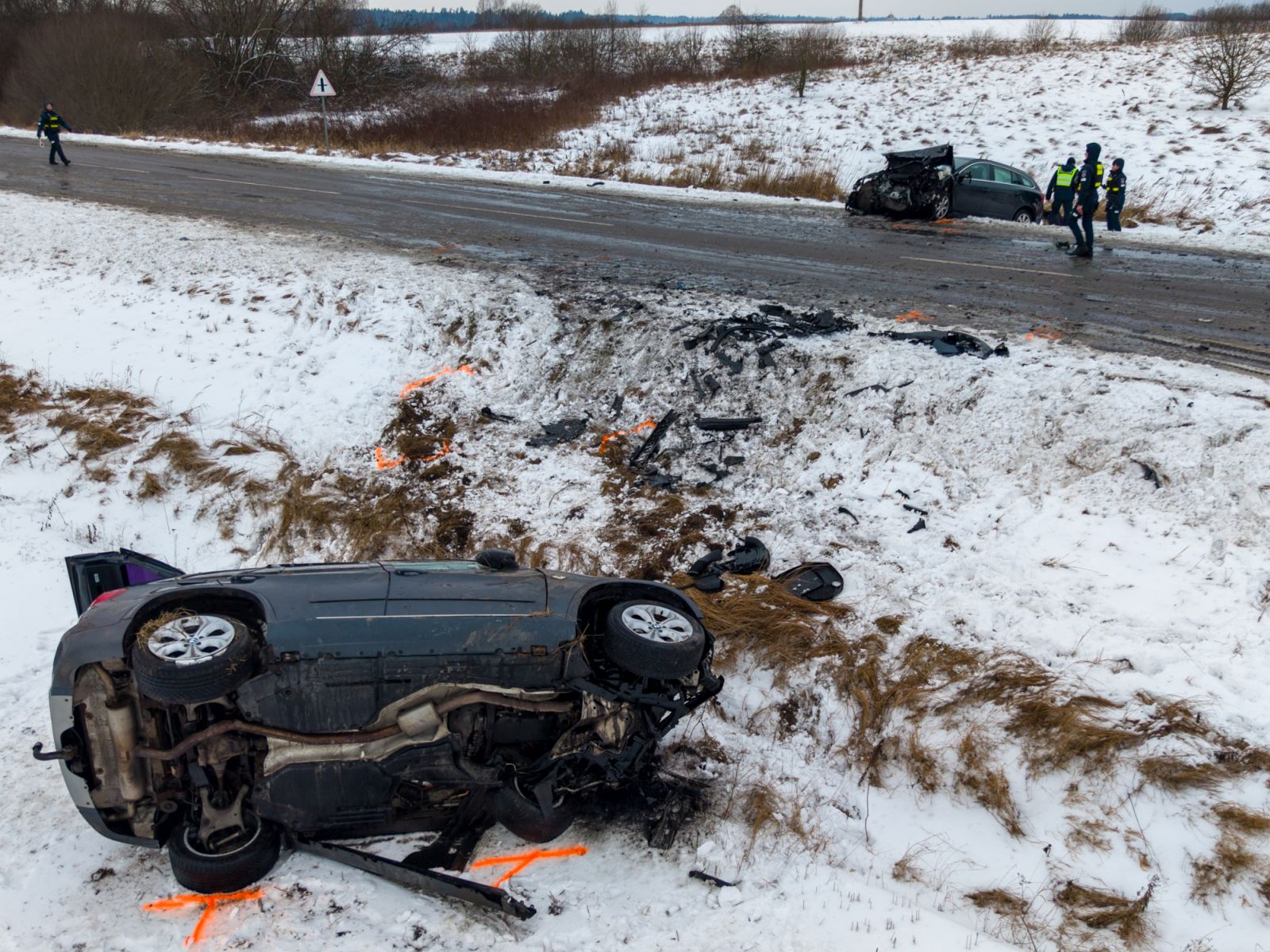 Automobiliu BMW vyko du suaugusieji ir vienas mažametis. Jie iš automobilio išlipo iki ugniagesių atvykimo. Visi žmonės išvežti į gydymo įstaigą.
