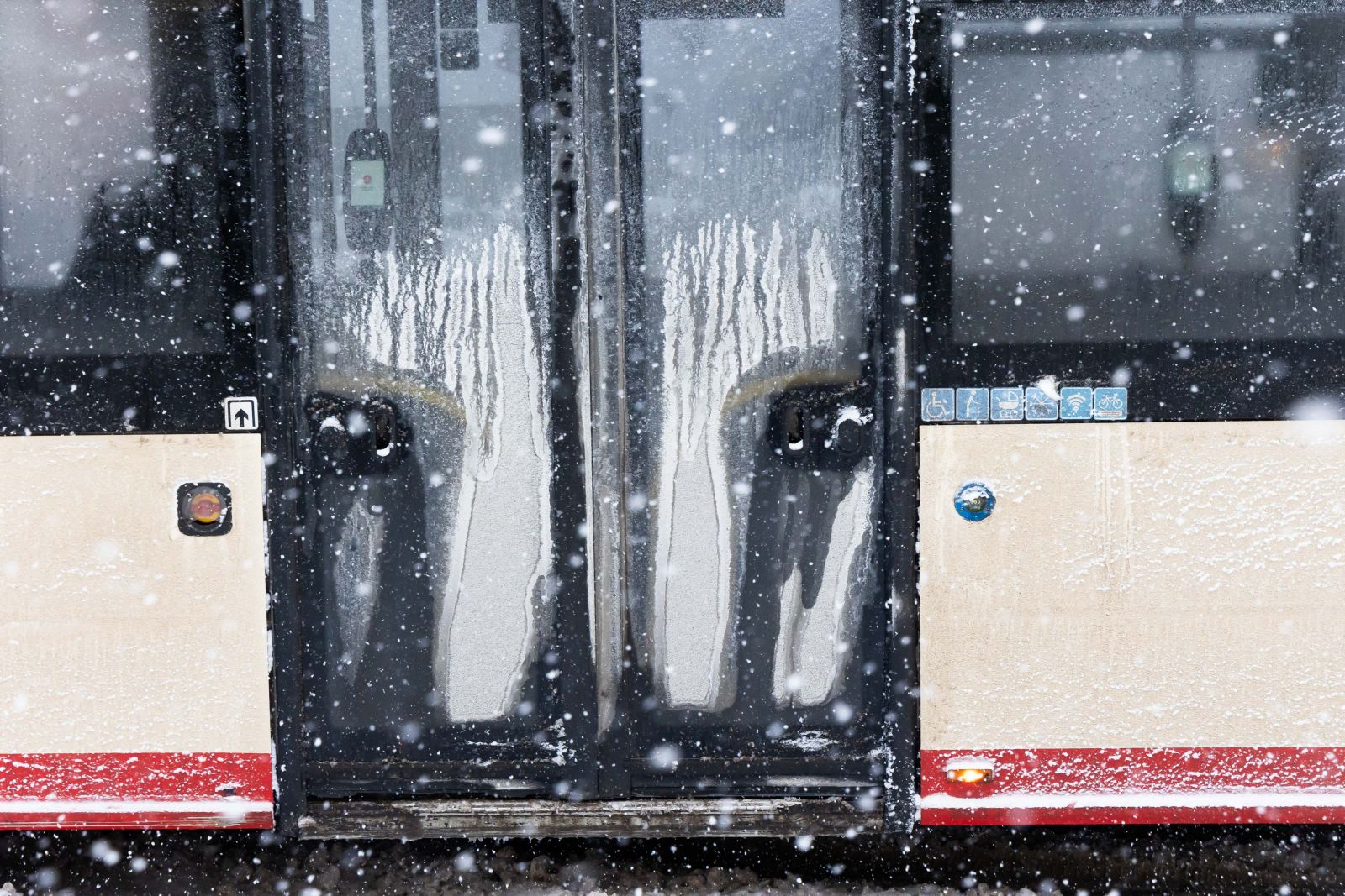 Sustabdžius troleibusą, pastebėtas galimai peršautas troleibuso šoninis lango stiklas.