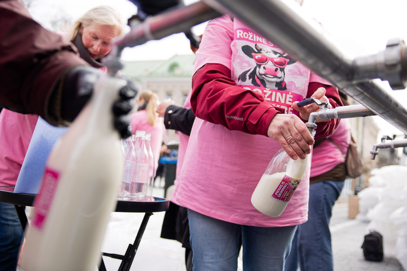 Lietuvos pieno gamintojus vienijanti asociacija ketvirtadienį prie Vyriausybės surengė protesto akciją, kurioje pieną dalino nemokamai – taip buvo siekiama parodyti, kokią mažą dalį galutinės jo kainos gauna pieno gamintojai.