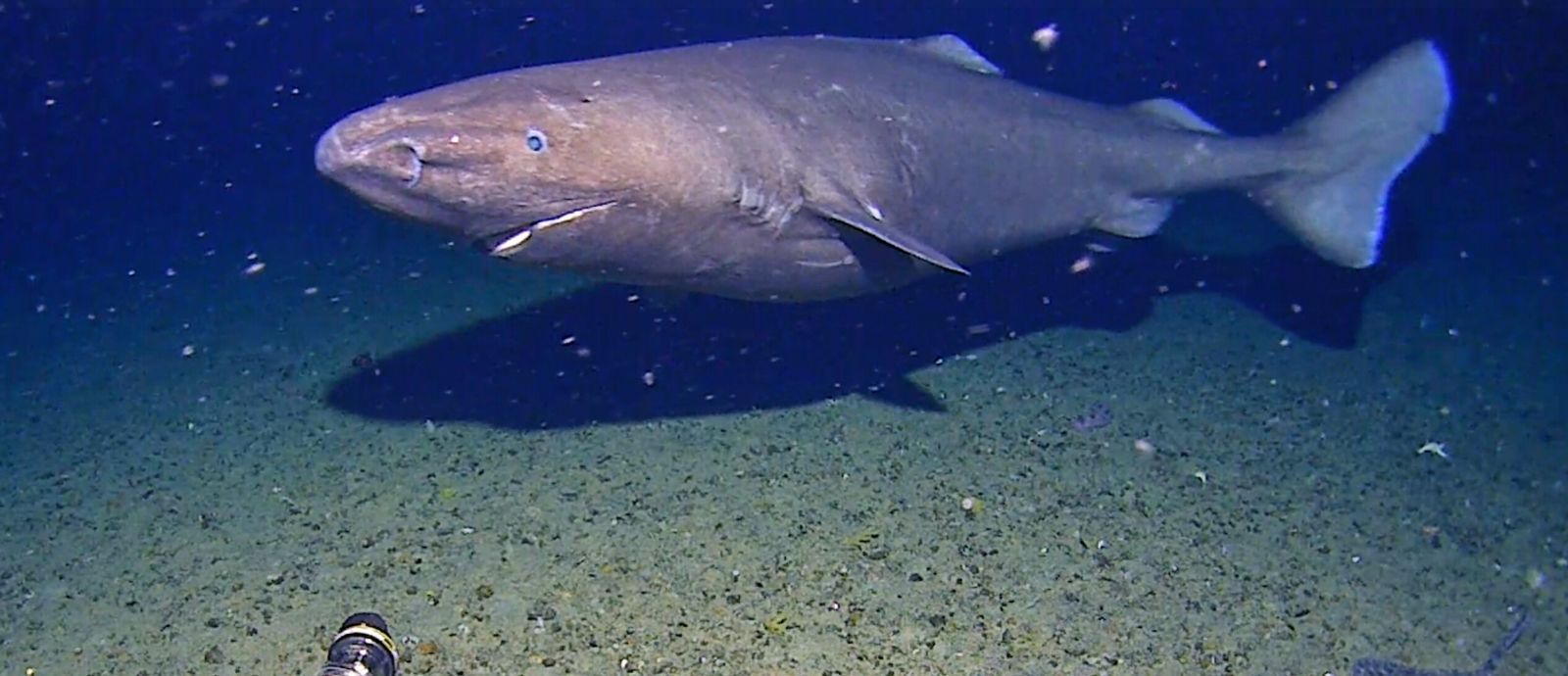 Filmuotoje medžiagoje matosi, kaip ryklys lėtai plaukia virš negyvenamo jūros dugno. Kamera užfiksavo ir rają - ryklių giminaitę.