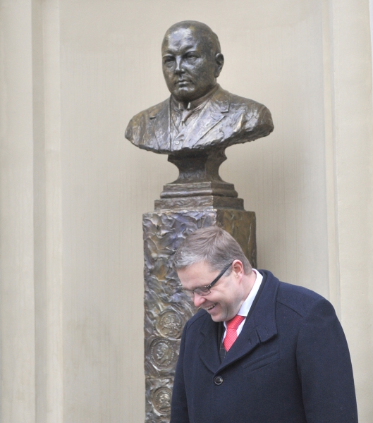 Stovi pavasarinio lietaus merkiamas lietuvių finansų mokslo pradininko, akademiko profesoriaus Vlado Jurgučio atvaizdas prie Lietuvos banko vartų kasdien žvelgdamas į Gedimino prospektu pro šalį kulniuojantį bankininką su liemene, lyg norėdamas atkreipti oraus pono dėmesį ir klausti: kam pajuokai mane čia pastatei, jeigu iš nacionalinės bankininkystės teliko tik rageliai ir nageliai.