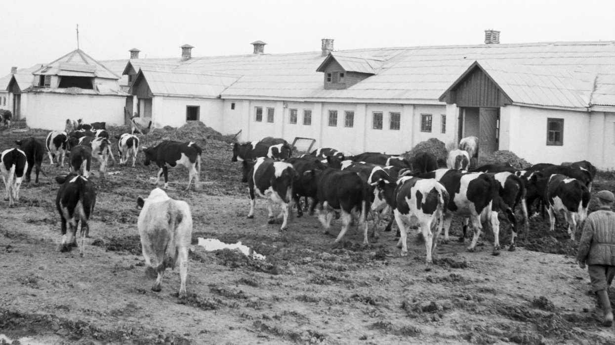 Vasara, fermų durys pradarytos, matyti garduose stovintys galvijai, jokių pakratų, tik srutos. Teta pasakodavo, kad fermose kone kasdien nugaišdavo gyvulių - karvių, veršiukų, kiaulių. Jiems nugaišus šiuos mesdavo į specialią duobę prie miškelio, o paskui užkasdavo.