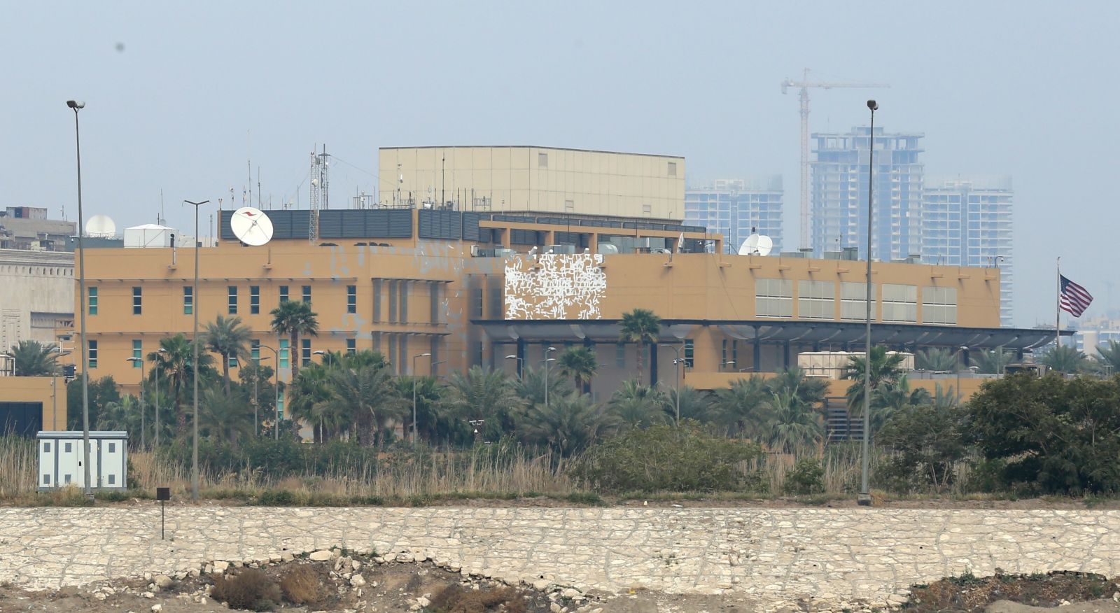 Du saugumo pareigūnai AFP sakė, kad ambasados kompleksas nukentėjo per išpuolį, nors priežastis nebuvo aiški. Vienas saugumo šaltinis teigė, kad į ambasadą pataikė dronas, kitas – kad sviedinys, kaip manoma, raketa, nukrito netoli ambasados oro bazės.