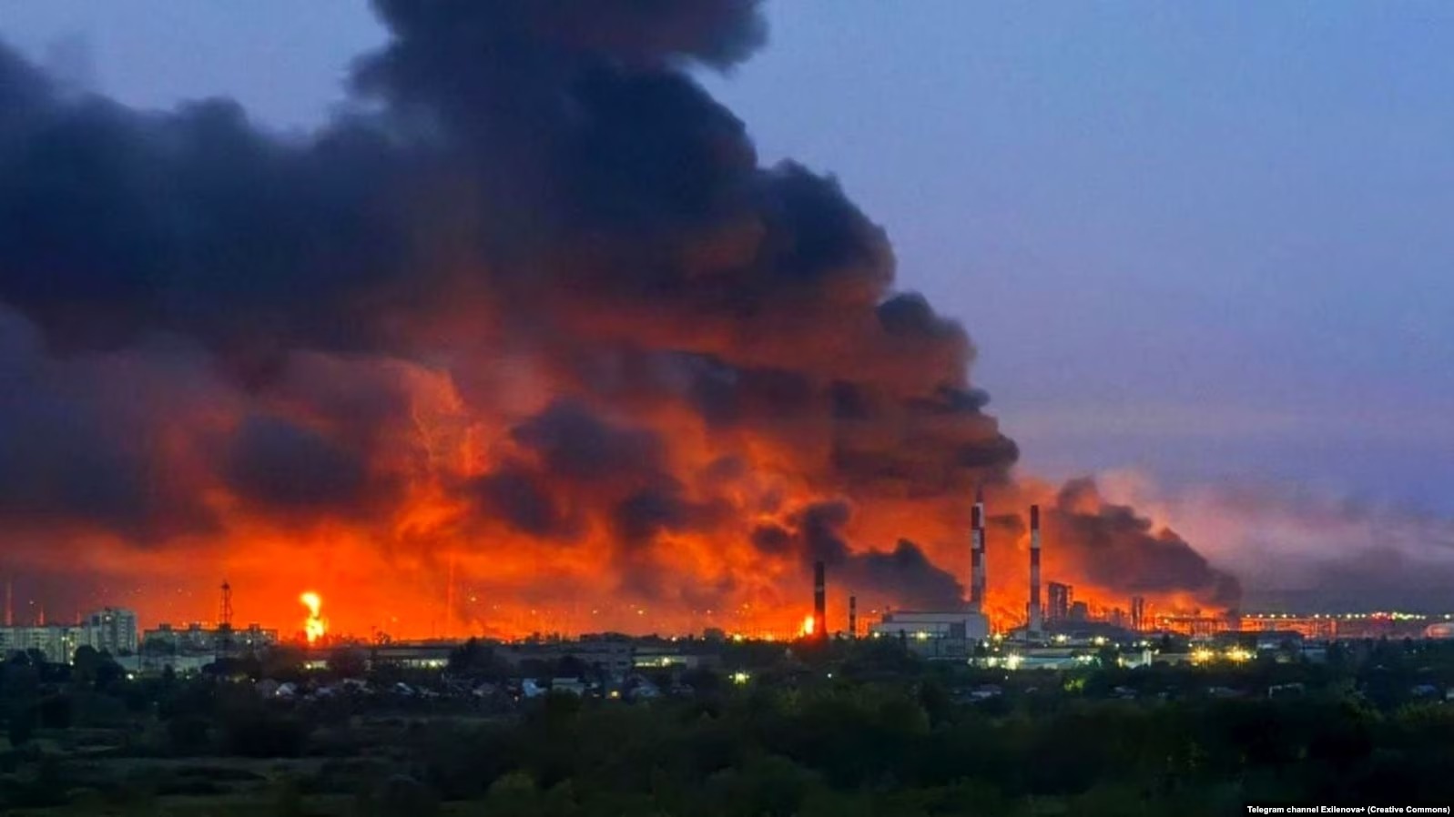 Socialiniuose tinkluose paskelbtuose vaizdo įrašuose matyti liepsnų stulpas, kylantis iš naftos saugyklos vietos Penzos rytiniuose priemiesčiuose, maždaug už 618 kilometrų nuo fronto linijos.