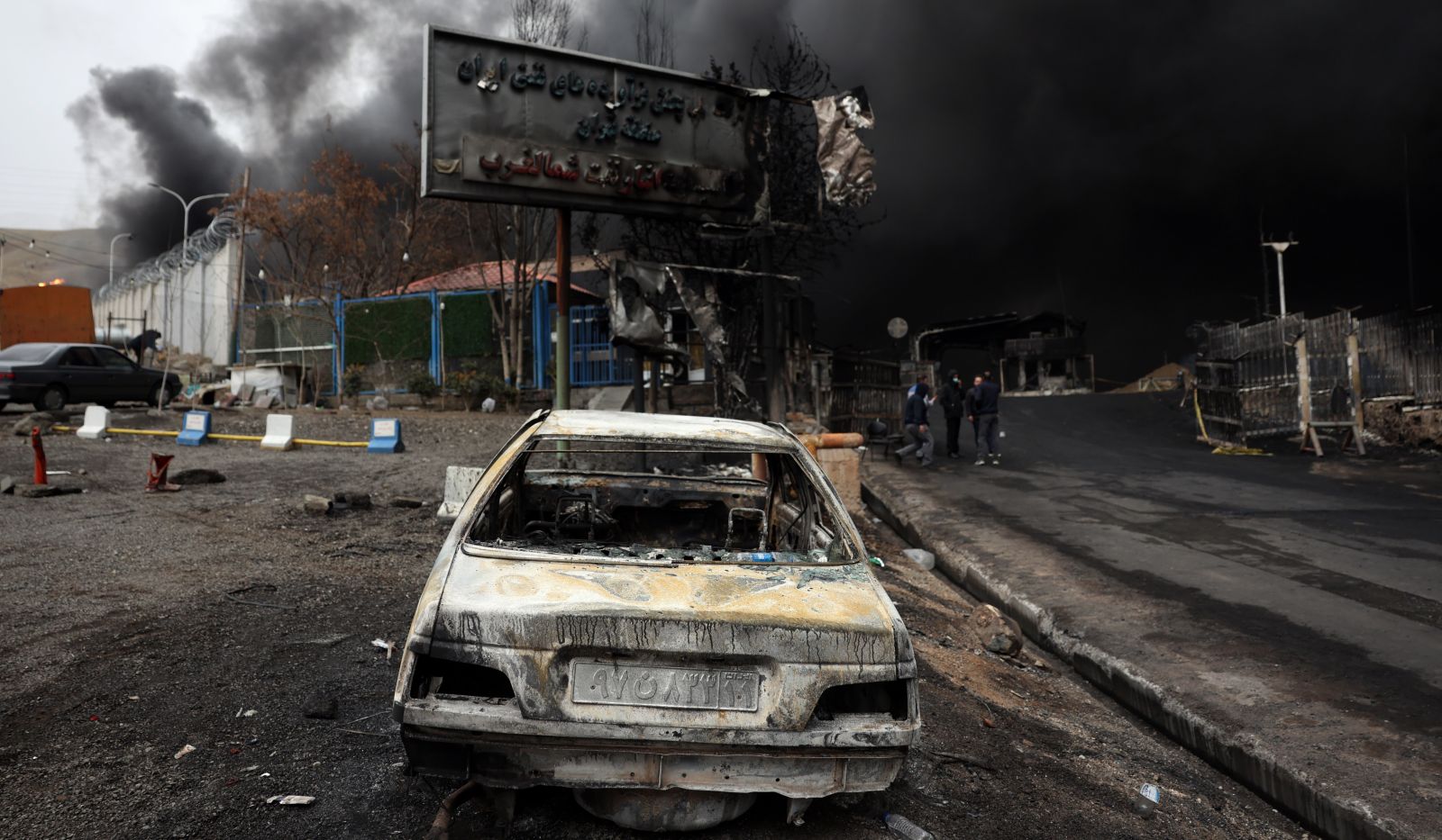 Atakuoti penki naftos objektai Teherane ir netoli jo. Iš jų į dangų kilo juodi dūmų debesys.