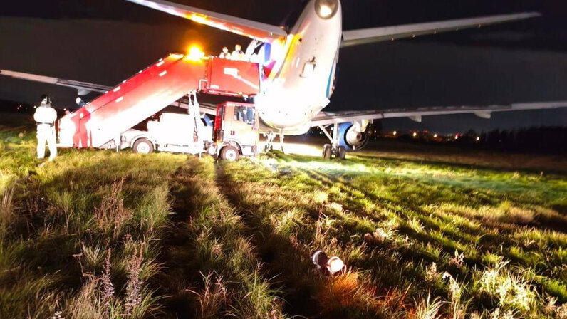 Sankt Peterburge leisdamasis avariniu būdu nuo tūpimo tako nučiuožė lėktuvas