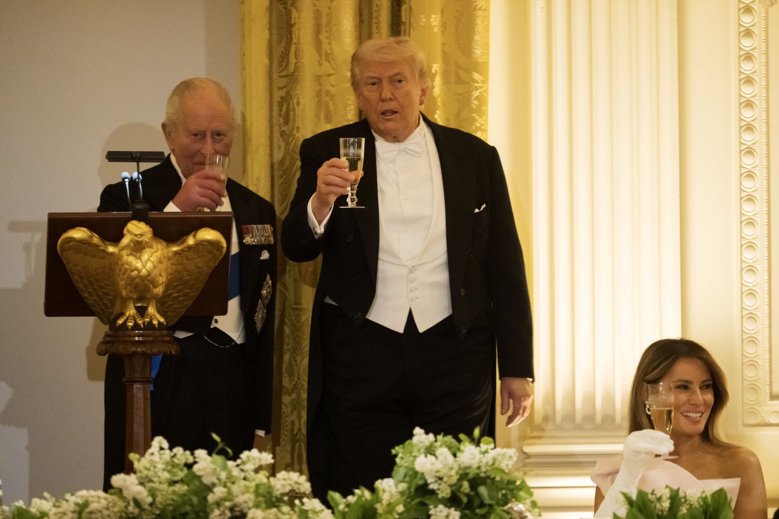 Per valstybinį banketą Baltuosiuose rūmuose, skirtą Didžiosios Britanijos karaliaus Karolio III garbei, JAV prezidentas Donaldas Trumpas pakartojo, kad JAV įveikė Iraną.