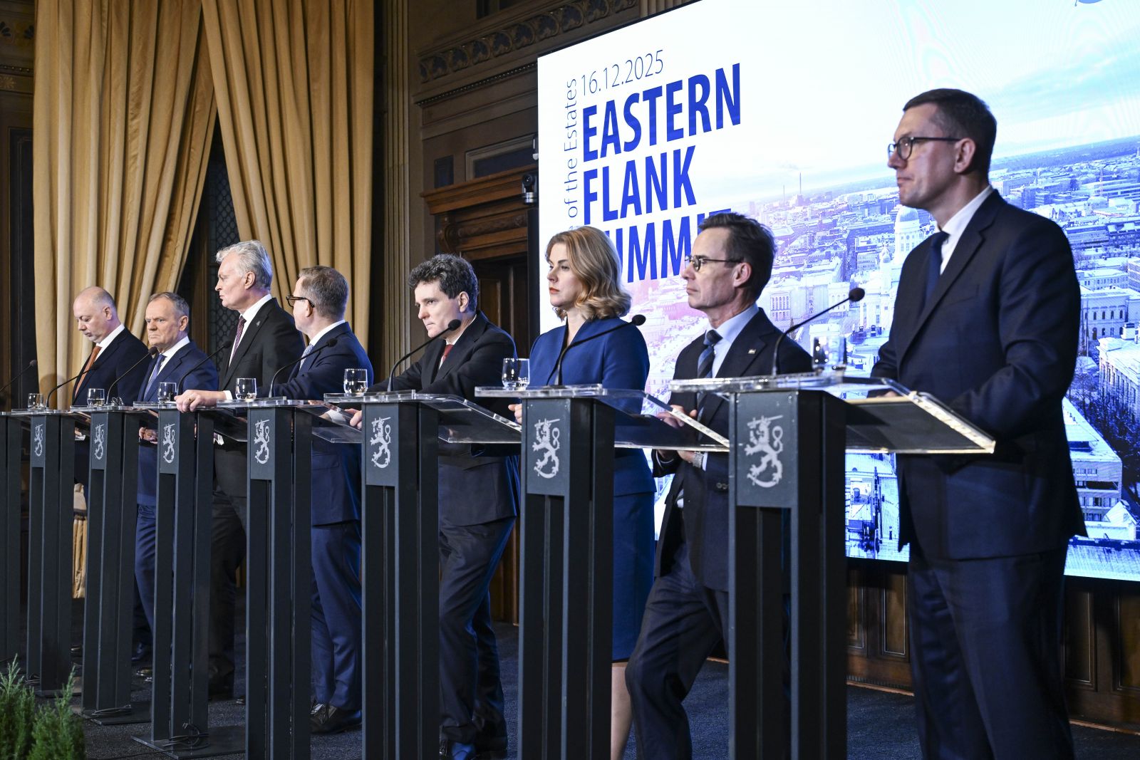 „Rusija šiandien kelia ir rytoj bei artimoje ateityje kels grėsmę visai Europai“, – po pirmojo Rytų sparno viršūnių susitikimo, kuriame dalyvavo Bulgarijos, Estijos, Suomijos, Latvijos, Lietuvos, Lenkijos, Rumunijos ir Švedijos vadovai, žurnalistams sakė Suomijos ministras pirmininkas Petteris Orpo.
