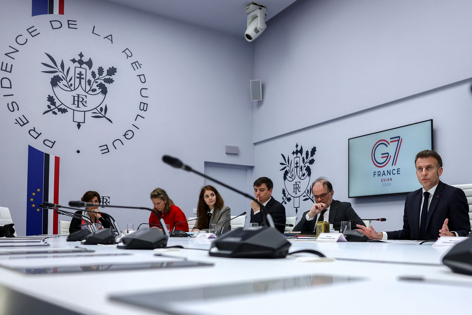Prancūzija šiuo metu vadovauja Didžiajam septynetui – išsivysčiusių demokratijų klubui, kuriam taip pat priklauso Jungtinė Karalystė, Kanada, Vokietija, Italija ir Japonija. Nors visos G7 šalys yra artimos JAV sąjungininkės, nė viena iš jų nepareiškė nedviprasmiškos paramos puolimui prieš Iraną, tuo papiktindamos D. Trumpą.