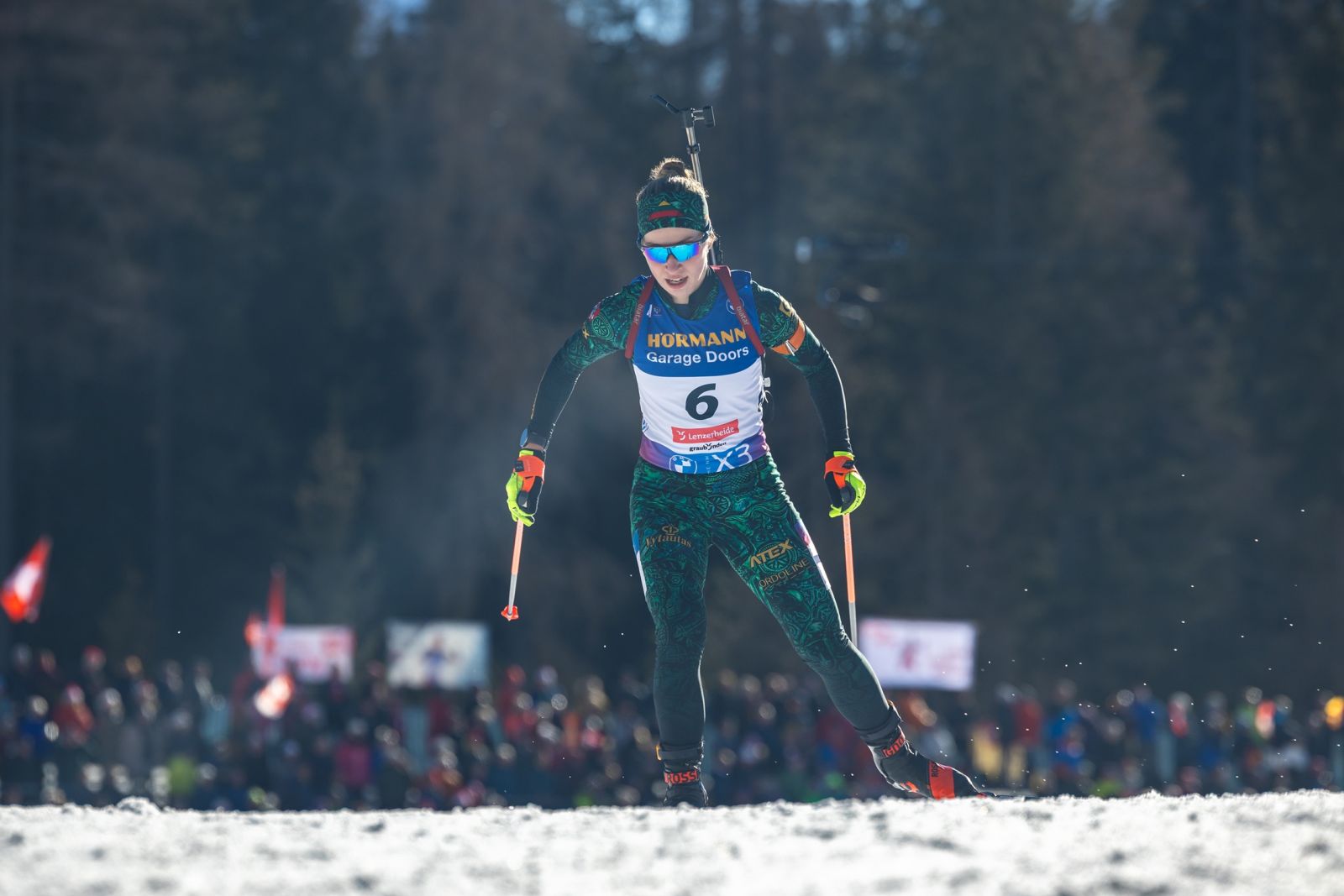 Lietuvos atstovė šaudykloje nesuklydo nė sykio ir šių metų pasaulio taurės laimėtojai vokietei Franziskai Preuss (šaudymas 0+1) nusileido 1 min. 0,2 sek. Antrą vietą užėmė 2021 metų planetos čempionė austrė Lisa Theresa Hauser (1+0), nugalėtojai pralaimėjusi 39,7 sek.