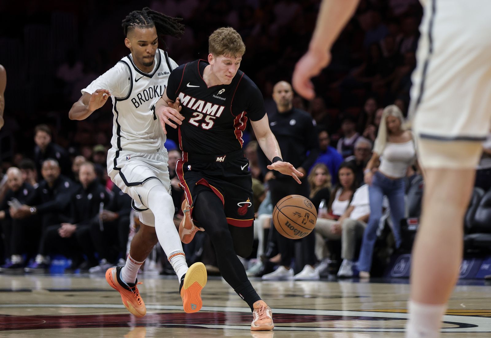 Majamio klubui 23 taškus surinko Bamas Adebajas (Bam Adebayo), 22 - Taileris Hirou (Tyler Hero). Bruklino ekipoje rezultatyviausiai žaidė Noa Klaunis (Noah Clowney), kurio sąskaitoje - 17 taškų. „Heat" (33 pergalės/29 pralaimėjimai) Rytų konferencijoje užima aštuntąją vietą, „Nets" (15/46) - 14-ąją.