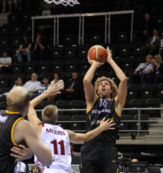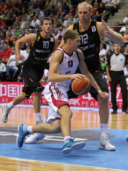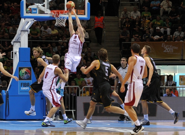 Vokietija - Latvija 81:80 (15:14, 18:19, 23:15, 25:32). Heiko Schaffartzik (10 rez. perd.), Chris Kaman (7 atk. kam.), Robin Benzing, Dirk Nowitzki ir Tibor Pleiss po 11/Rihards Kuksiks 27 (6 atk. kam.), Dairis Bertans 15, Rolands Freimanis 13 (7 atk. kam.), Martins Meiers 11.
