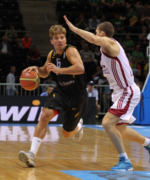 (8/13) B grupėje Šiauliuose susitinka Latvijos ir Vokietijos krepšinio rinktinės. Giedriaus Baranausko nuotr.