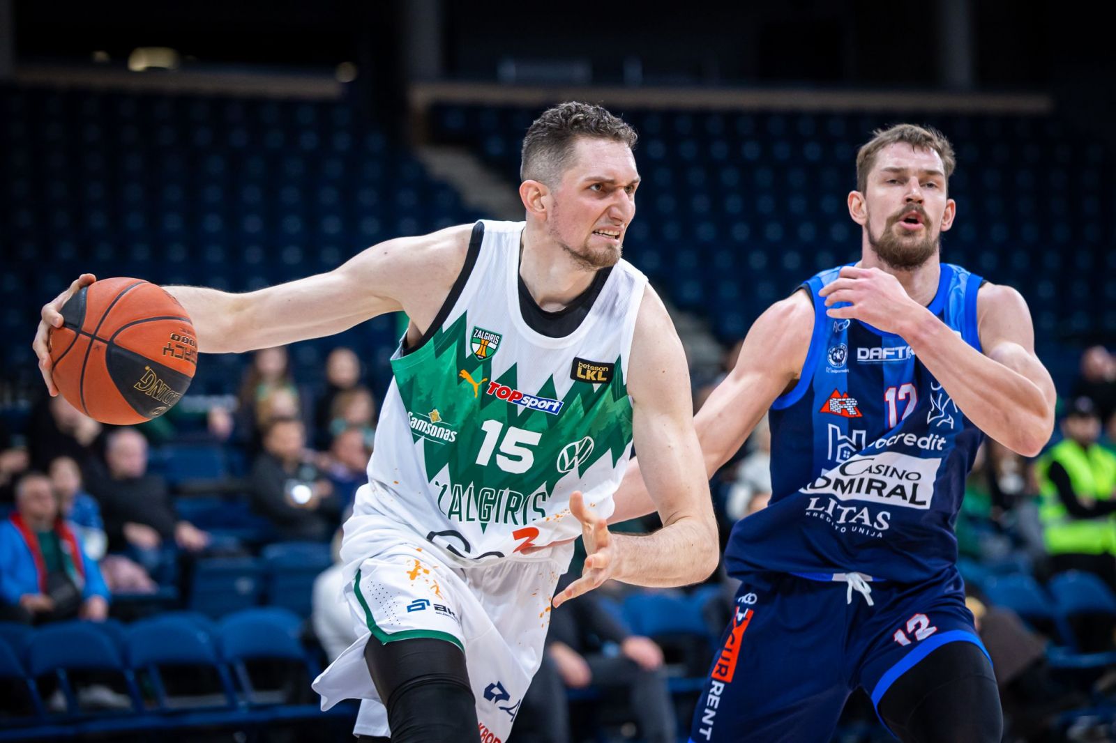 Matas Repšys, Olinas Carteris ir Benjaminas Krikke ėmė rengti spurtą (32:40), bet vis sulaukdavo atsako ir „Žalgiris" persvaros nebarstė. Po pirmos mačo dalies kauniečiai vis dar pirmavo gana tvirtai - 40:52.